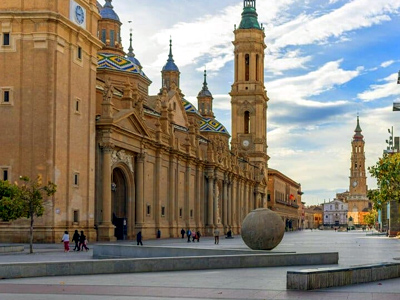 A geographic overview of the Aragon region in Spain, focusing on the Ebro river valley and the historical development of the city's mudéjar architecture.